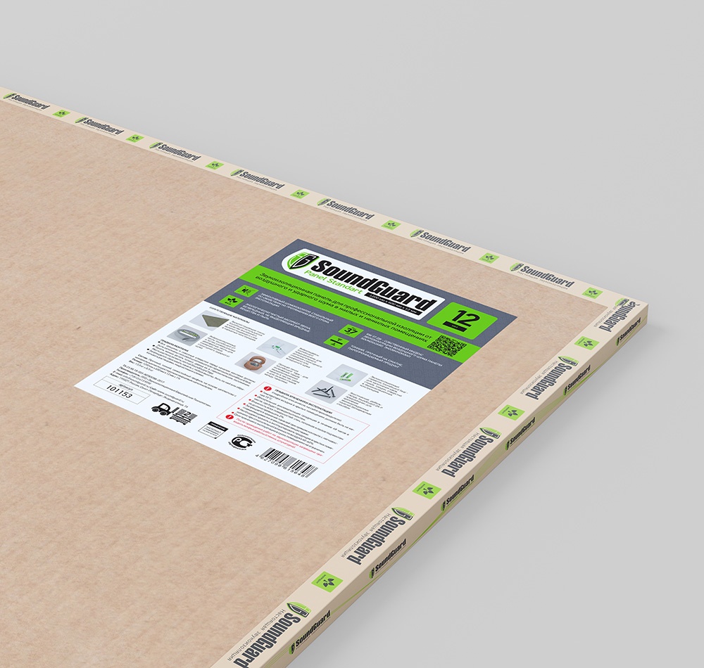 Благодаря своим физико-механическим свойствам панель SoundGuard Standart Compact обеспечивает снижение проникающего шума в широком диапазоне частот. Эффективность SoundGuard Standart Compact достигается за счет массивности, высокой плотности панели, многослойности гофрированного картона, который заполнен кварцевым наполнителем.